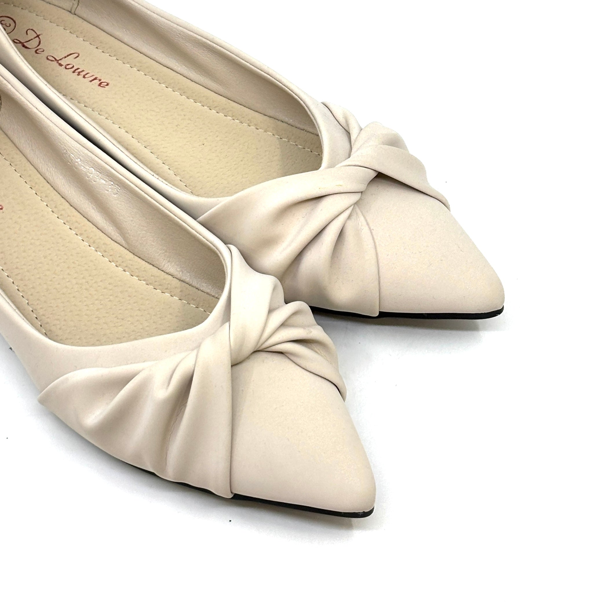 Jodie is a flat pointed-toed heel with a bow-like design on top. It is a perfect pair for everyday wear or to the formals. Choose between black and Beige colour according to your liking.